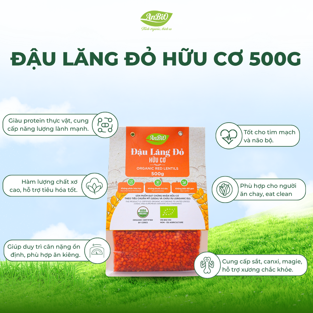 - Tên sản phẩm: Đậu lăng đỏ hữu cơ AnBiO