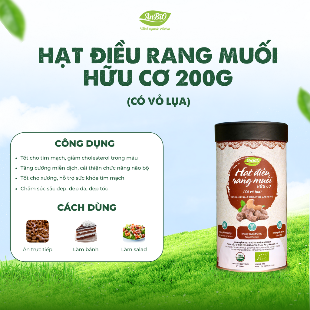 Hạt Điều Rang Muối Hữu Cơ Vỏ Lụa 200g - AnBiO