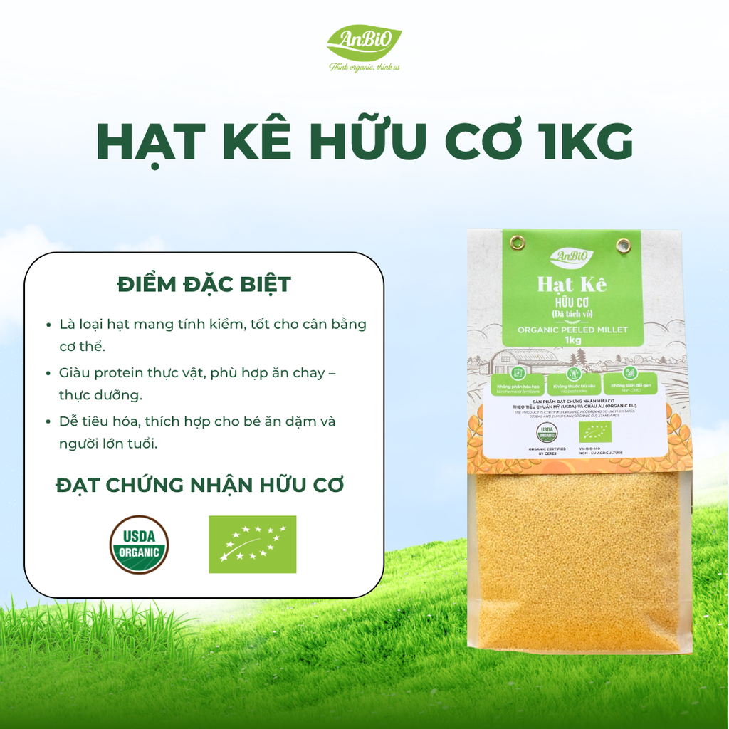 - Thành phần: 100% hạt kê hữu cơ