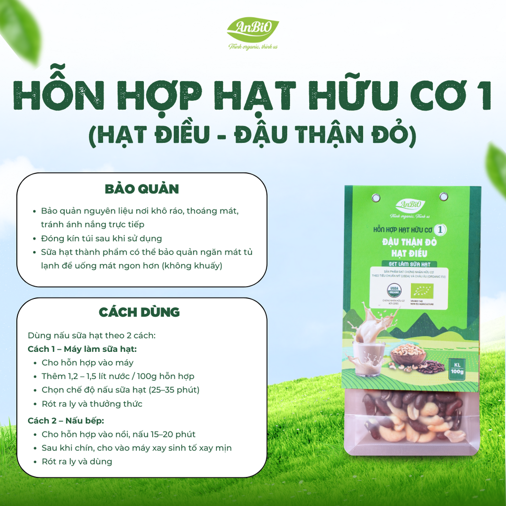 AnBio cam kết sử dụng nguồn nguyên liệu hữu cơ đạt chuẩn cao nhất. Hỗn hợp hạt của chúng tôi không chỉ là thực phẩm, mà còn là sự đảm bảo về sự thuần khiết và an toàn tuyệt đối cho sức khỏe của bạn và gia đình.