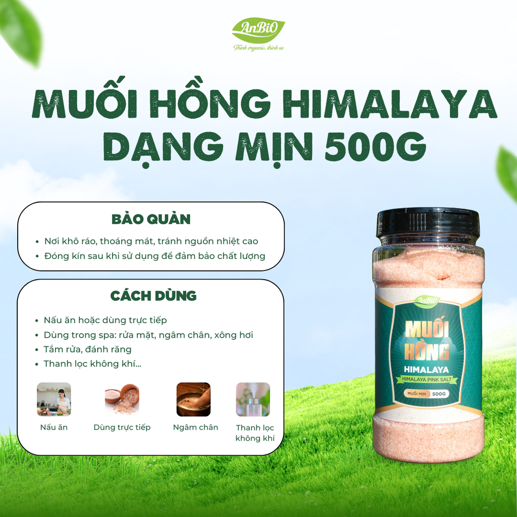 Muối hồng Himalaya Anbio dạng mịn 500g