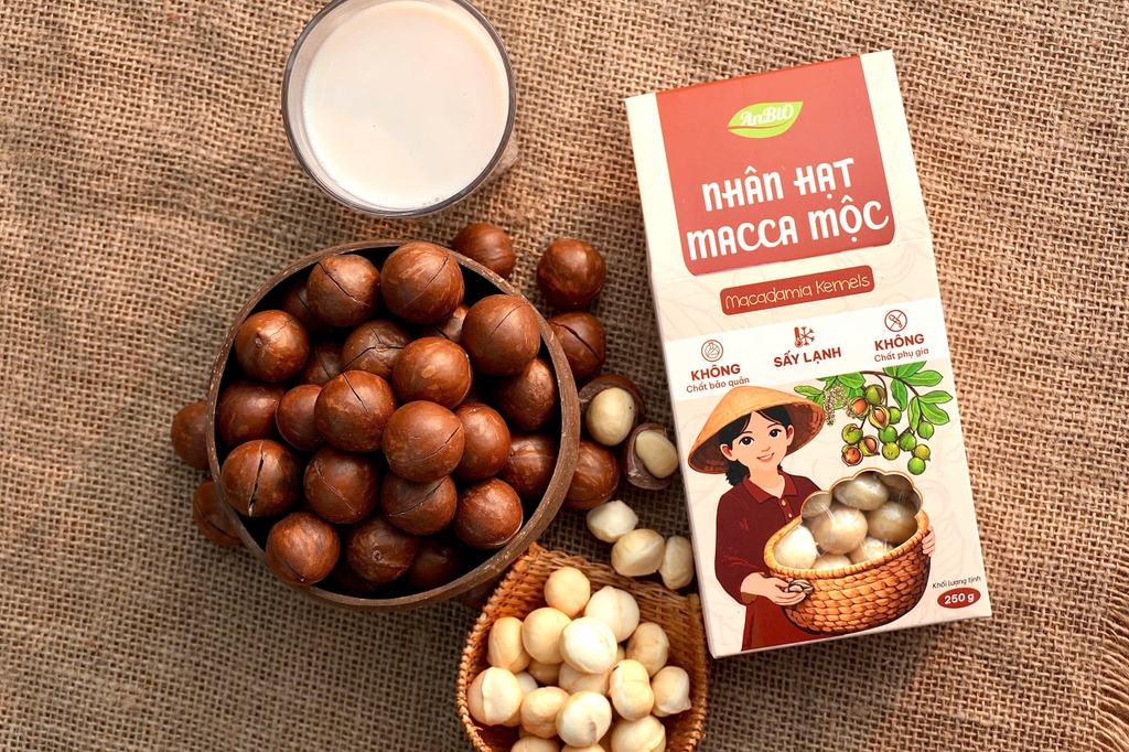Nhân hạt macca mộc AnBiO được tuyển chọn từ những hạt macca chất lượng cao, có nguồn gốc từ Đắk Lắk, Việt Nam. Sản phẩm được chế biến mộc hoàn toàn, không rang muối, không tẩm gia vị, giữ trọn vẹn hương vị béo bùi tự nhiên đặc trưng của hạt macca. Đây là sự lựa chọn lý tưởng cho những ai theo đuổi lối sống ăn sạch, ăn lành và tối giản trong chế biến.
